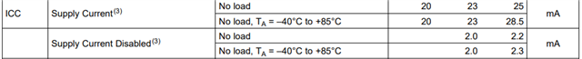 disable条件下应该是满足下面的supply current disable的范围,测试下来是否在这个范围内呢?