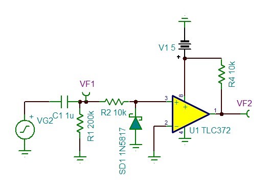 输入是:峰峰值为0~2V的单极性正弦波,频率为10Hz。单独的高通和TLC比较器都能正常工作,当他们接到一起后,从高通滤波器输出的波形明显被抬升了好几百毫伏(应该是规则的正弦波的)。不知道为什么,跟TLC内部结构有关系吗?望指教!电路图如下: