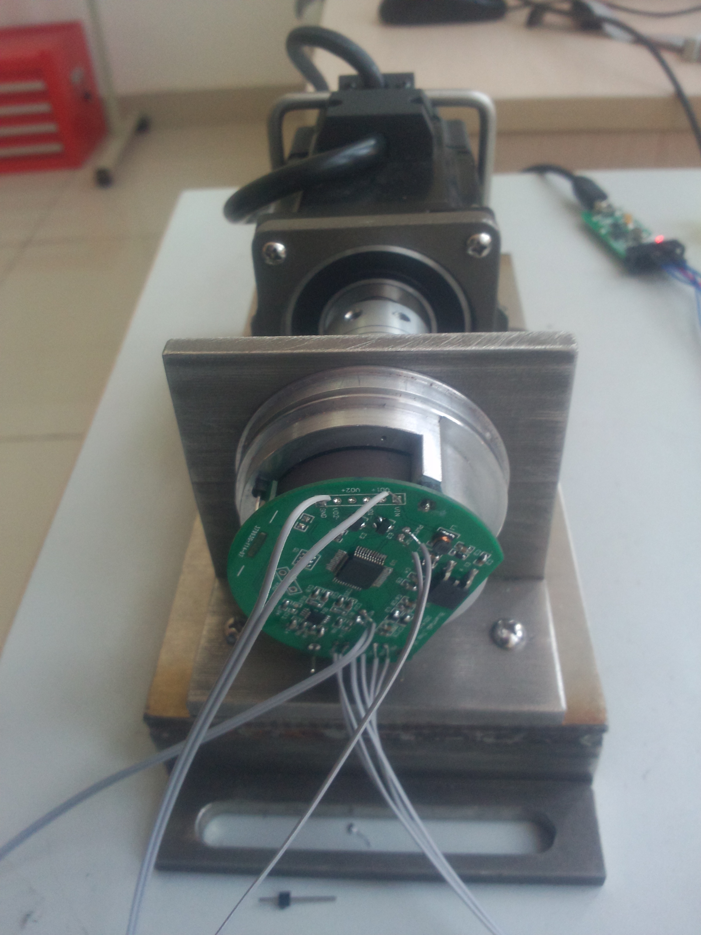 1、拍一个系统的整体工作的照片,包括你提到的“电机是固定在一个钢的底座上面的,如果电路板接触到刚底座干扰会立刻便很大”