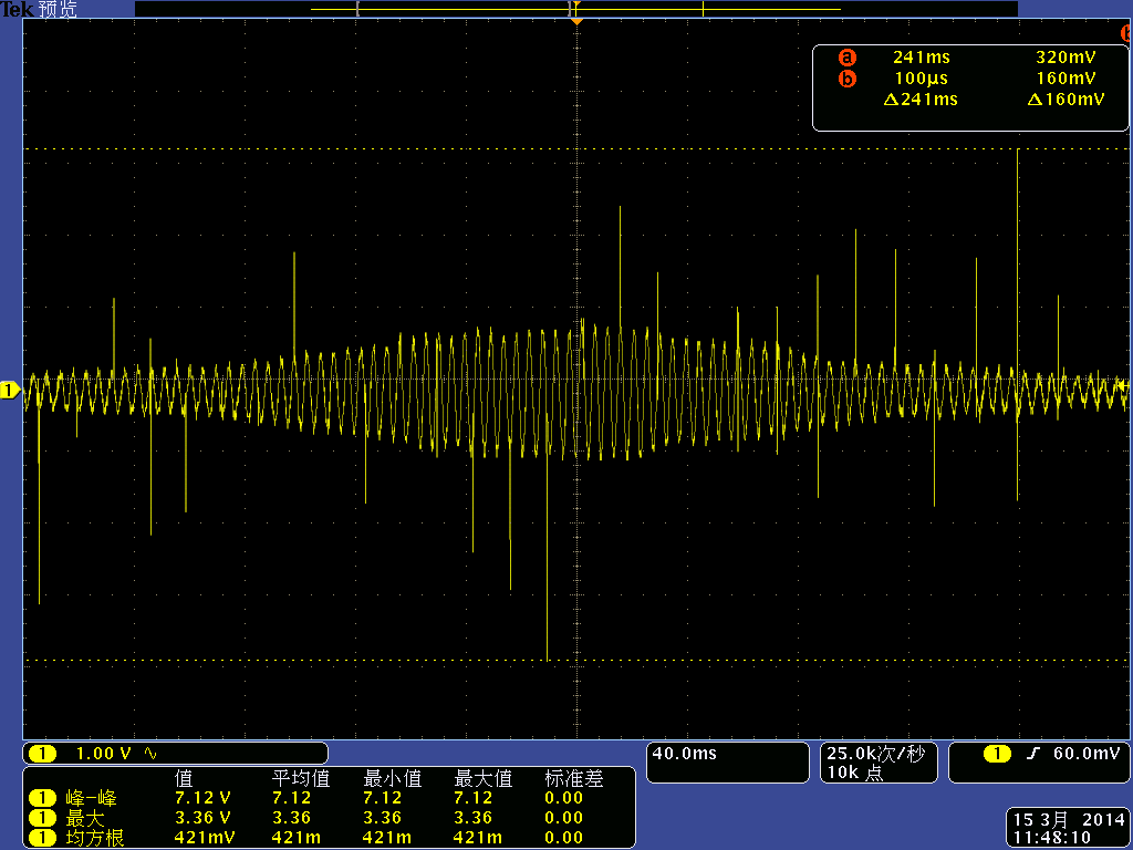 另外现在系统有一个开关电源,不过PWM频率我测试不到,不是我设计的。但是干扰的频率是在40Khz,我觉得应该是对应的PWM频率了。