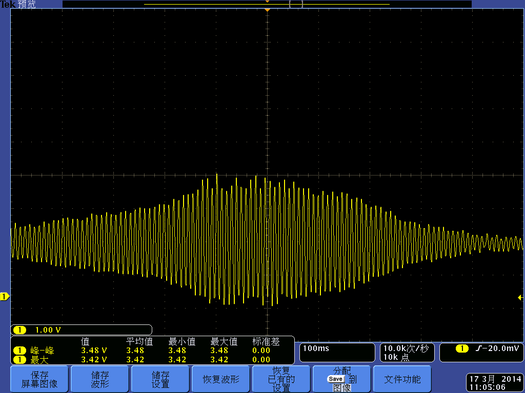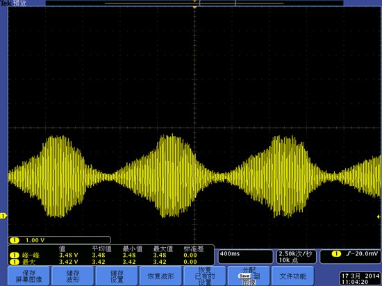 这是运放输出的电压信号。可见很多高频脉冲干扰。