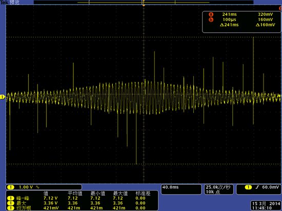 现象而二:打开无刷电机,及时电路板不同电,在板子上随便测一个电都叠加了干扰脉冲。
