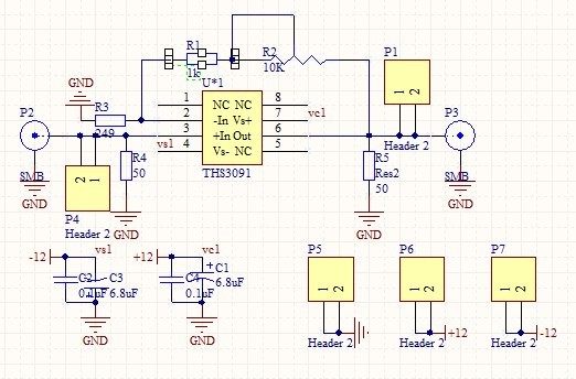 采用THS3091来输出6Vpp,供电+5,-5,但波形始终没有正常输出。