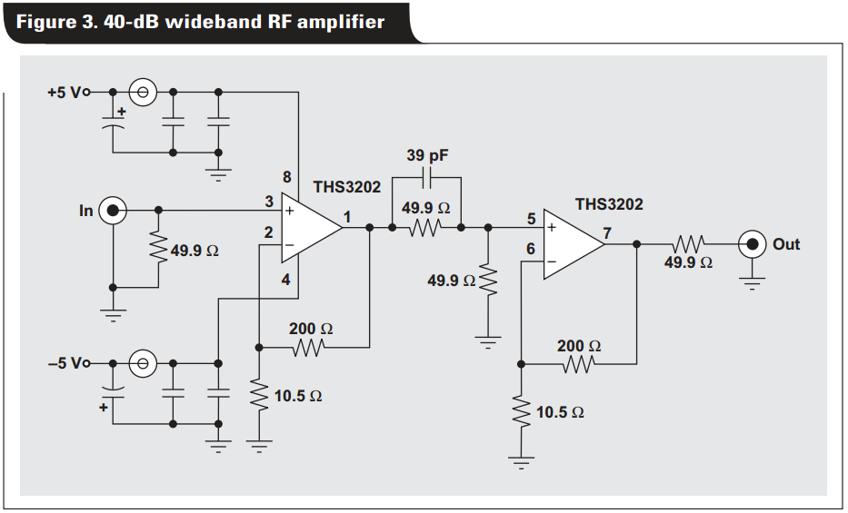 目标做一个100MHz 60dB的放大器,第二级打算用THS3202做40dB增益。