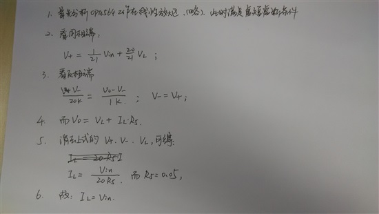 神奇吧,最后得到的RL上的电流,仅与R3和输入电压有关,而且是线性关系。最重要的是,这个电流源不像其他的电流源。因为负载电阻可以直接接地,而且负载电阻上的电流可正可负,具体大小与正负由输入电压来决定。