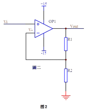 由abc式得Vout=Vi*(R1+R2)/R2,这就是传说中的同向放大器的公式了。