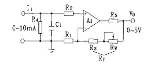 要求:电流输入信号Ii是从运算放大器A1的同相输入端输入的,因此要求选用具有较高共模抑制比的运算放大器,例如,OP-07、OP-27等。R4为高精度、热稳定性较好的电阻。