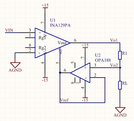 负载电流(忽略OPA188的IB):IL=(Vo1-Vo2)/R1;