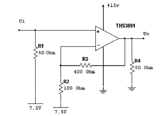 设计1个5V单电源供电的宽带噪声放大器,输出为50欧姆的阻性负载,放大器电压增益≧40dB(100倍),并尽量减小带内波动; 在最大增益下,放大器下限截止频率不高于20Hz,上限截止频率不低于5MHz; 在输出负载上,放大器最大不失真输出电压峰峰值≥10V。