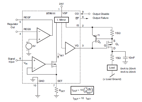 我使用XTR111的数据手册中的推荐电路图搭建电路,发现3脚输出电压不随6脚输入电压的变化而变化,输出电流也不变。但改变Rset后,输出电流有变化,请问是什么原因?
