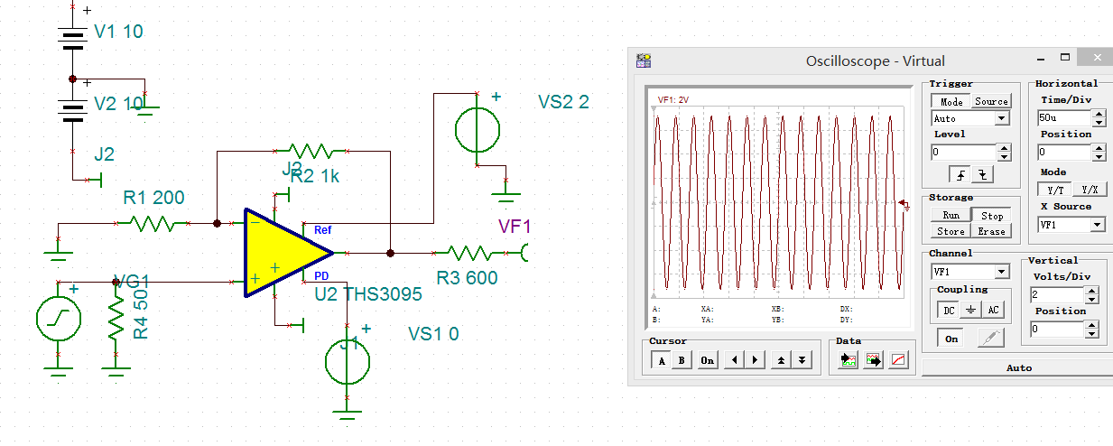 TI提供的THS3095的TINA模型中PD=5V,Vref=0V,所以没问题。