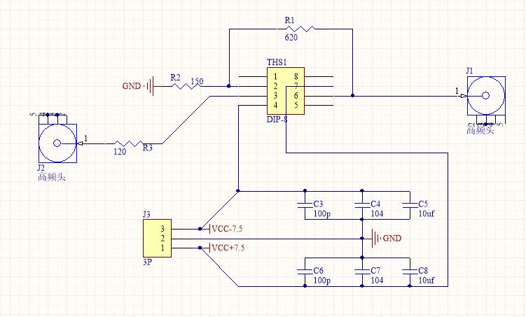 2.阻抗匹配对于高速运放很重要。就是50欧电阻一定要接。