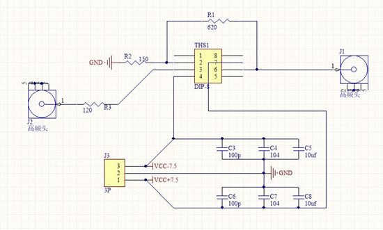 1.电路板完全按照原理图布局,同时去掉输入端,输出端信号线周围地;