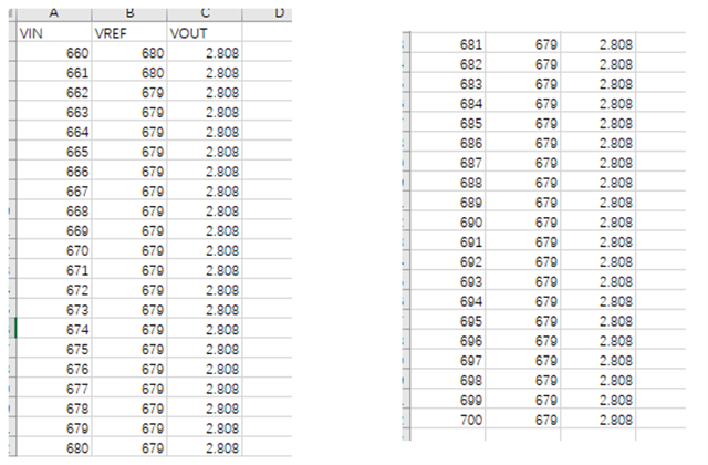 当我使用TLV3603测量两电压比较结果时,Vhyst脚悬空,即对应手册上3mV迟滞电压。VCC接5V,VEE接AGND,IN-接680mV,依次手动按1mV增量改变IN+的输入电压值(660mV——700mV),三个输入电压都由3通道电压源提供,且每次在引脚上的电压都用万用表测量正确的数值,发现OUT端始终为2.6——2.8V范围内浮动。当IN+为810mV时,OUT输出端为4.99V,且有时改变输入电压固定值,不同时刻测试输出脚时而2.6几,时而4.99.不知道问题出在哪?迟滞电压如何为3mV?