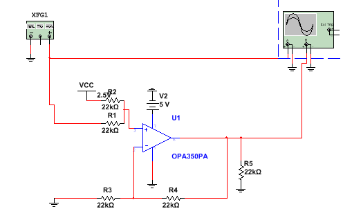 最近要做一个设计,要用到加法器电路,在Multism中仿真,最开始用OPA350