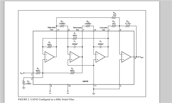 UAF42 TINA-TI仿真 60HZ陷波电路