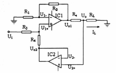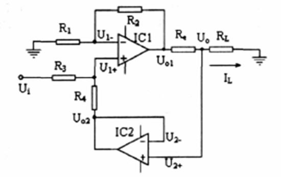 这是一个典型的howland电流源电路,详细分析请参考下面的应用手册。近期我也会放一篇中文的文档上来。