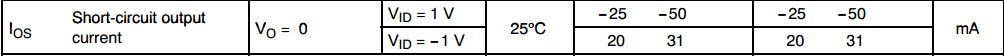 请问专家:运放最小短路电流这个参数就是运放的输出最大电流吗?运放的输出能力看哪个指标?