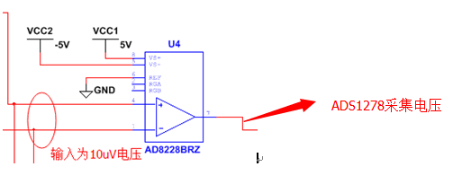 需要测量10uV电压,使用AD8228放大100倍,放大后的电压时负值,请问这是怎么回事啊?