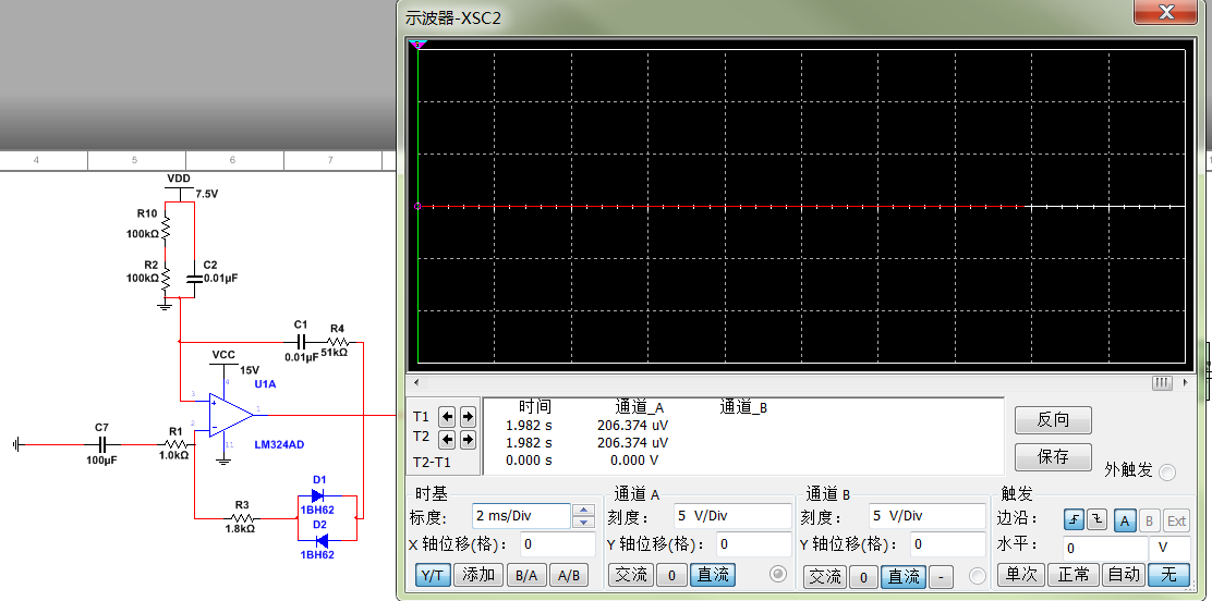 • 亲;两个100kohm接的有问题,串联的中间点接运放三脚。现在接地了。见图。