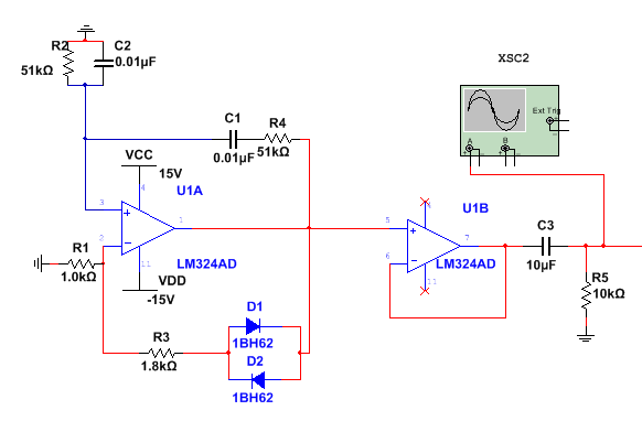 用LM324做了一个RC震荡正弦波发生器  为什么我使用双电源供电(+15v   -15v)可以产生正弦波 ,当使用单电源(+12v)供电时  波形完全是杂乱的  请教如果用单电源供电应该如何对电路进行处理?  谢谢