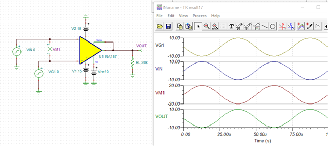 您看下是否是实现这个功能?我选了一款Gain=1/2的差分运放,因为如果同相和反相分别为+-10V的差分信号,差模幅值为+-20V,所以再输出+-10V的话需要Gain=1/2. Vout=1/2(Vin+ - Vin-)