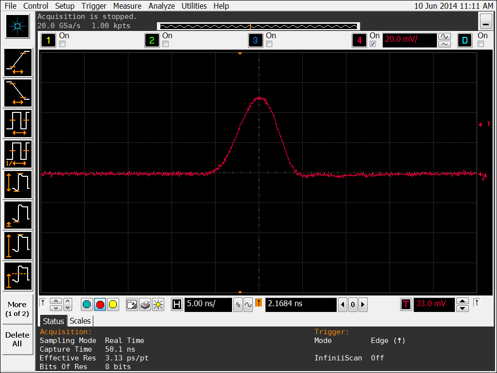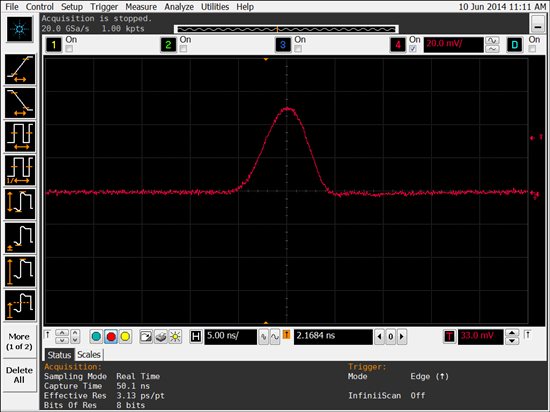 目前系统应用,宽带小信号放大,频带:DC-100MHz, 幅度:0.5mV,放大100倍。