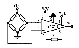 但是我想用TI公司的高速仪表放大器INA217,一换成INA217,不管我怎么用力踩传感器,放大器输出都没任何反应。我一开始以为是买了假芯片,后来又买了一次,还是一样。我踩传感器的时候,传感器信号端能达到5mV,仪表放大器1脚和8脚之间的电阻是100欧姆。那么根据INA217的计算公式,放大倍数应该是100倍,输出应该有500mV,结果连1个mV都没有输出。谁能帮帮我?