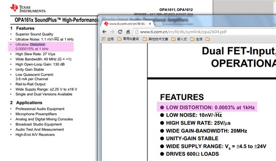 我做了一个音频DAC的板子,CS4398,使用的官方的电路,其中的运放用的是OPA2604,供电是+-5.5V,THD+N一直比较大,后来调高了电压到12V,失真度就降了下来。是不是OPA2604在低供电电压的情况下不太适用,后面我在+-5.5V供电的情况下换了一个OPA1612,失真度比OPA2604要小很多。