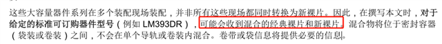 您好,下面应用手册的第2.4部分,如下截图处说明了原因,即现有规范限制,经典设备的部件标记和可订购部件号将保持不变。 一些打字和图形可能会发生变化,以反映旧版和新版之间的任何重大差异。新型裸片设备已通过或超过了经典裸片的所有资格,PCN中将提供资格摘要。