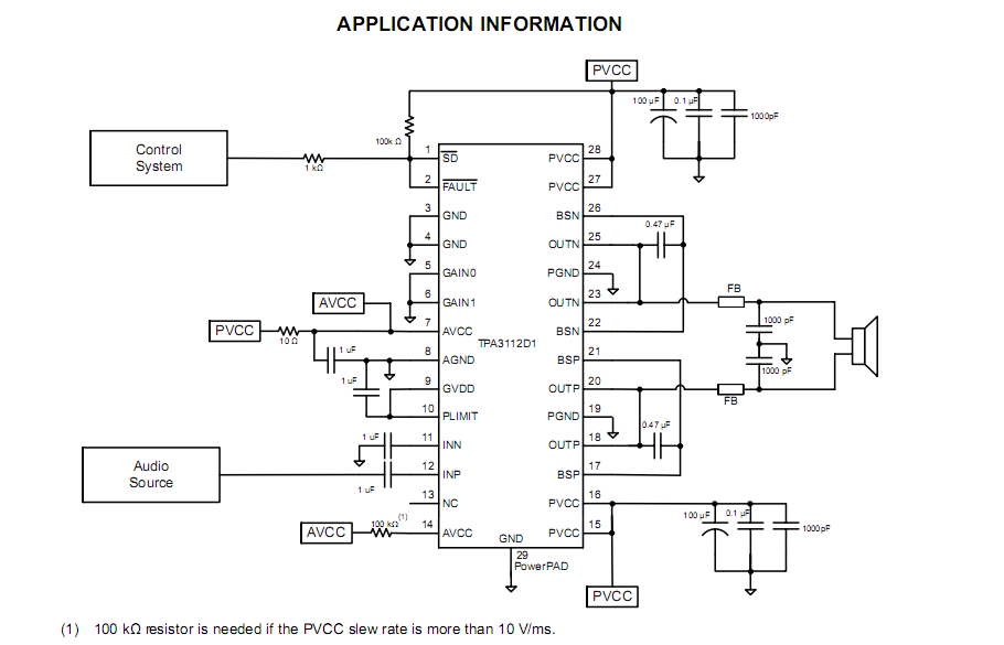 我照TPA3112D1的datasheet的典型应用电路焊接了一个音频功放,但出来的波形一直在失真或出不来,这是什么原因?输入和输出及电源的这些GND都可以接在一起吗?