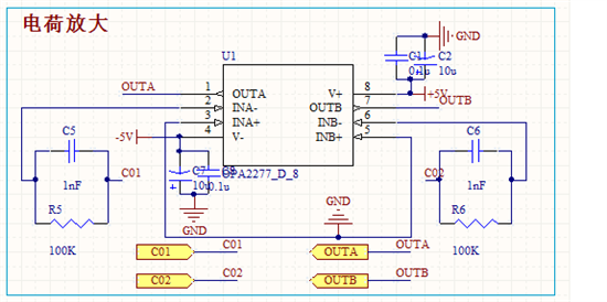 接线:4接-5V,8接+5V,3、5脚,即两个运放的正端接GND。2、6脚都接上:1NF电容和100K欧电阻的并联,C01和C02没接信号,无其余信号输入。。。 用示波器测了下,2、6、3、5脚约等于0V,4脚-5V,8脚+5V!问题来了:1脚OUTA和7脚OUTB居然都有类似方波的周期性峰峰值为7~8V的信号!这个信号从何而来?1、7脚在没有信号输入的情况下不也应该为0V么!? 求各位大神了。百思不得其解。 特别急
