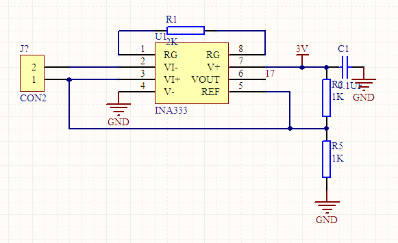 你电路的输入共模电压超过了INA333 在 3.3V供电的时候允许的输入范围。
