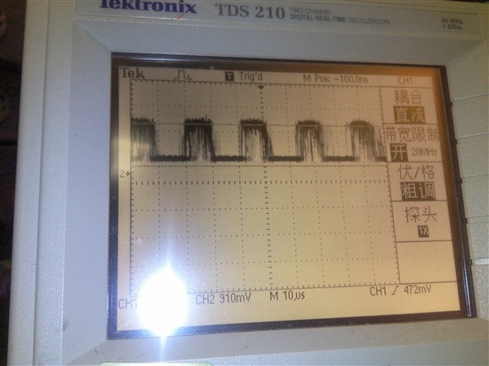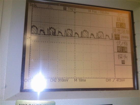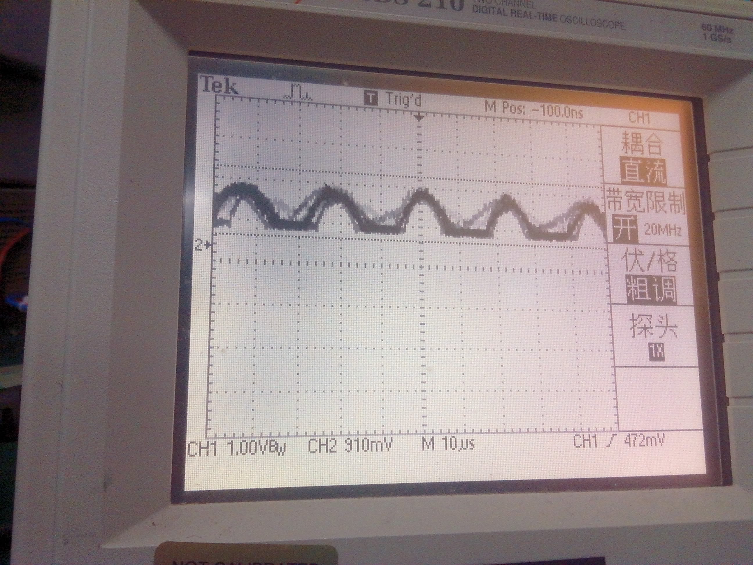 然后用旁边的线 压线头 起子 手指等 接触D1右边的那个触点 就出现以下的各种波形。 触摸左边和其他随机到处的触点都没事。