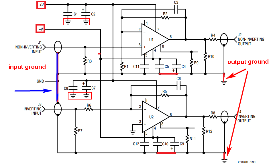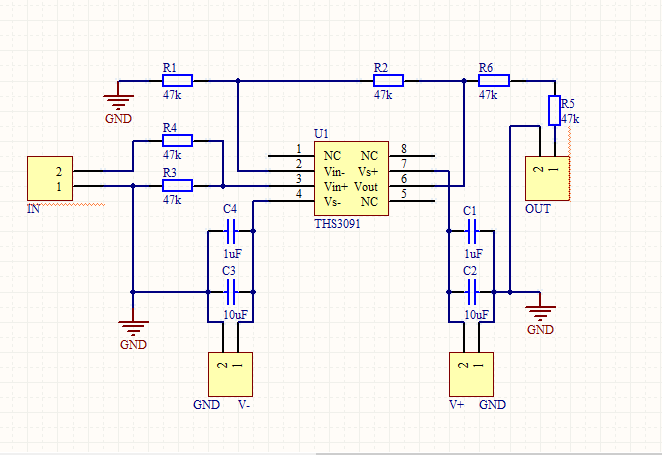 这几天调放大器的时候,一个放大器THS3091出现了自激振荡,不是说电阻性反馈不容易出现自激吗?是不是外围器件的大小选的有问题啊!!!请问该如何解决此问题呢?电路原理图在下面!