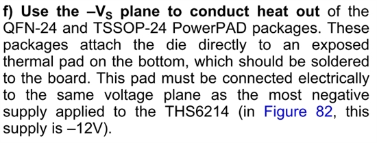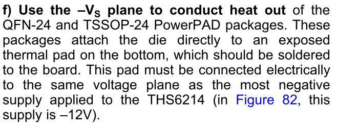 VS– to VS+. Typically, the PowerPAD is connected to the GND plane because this plane tends to physically be the