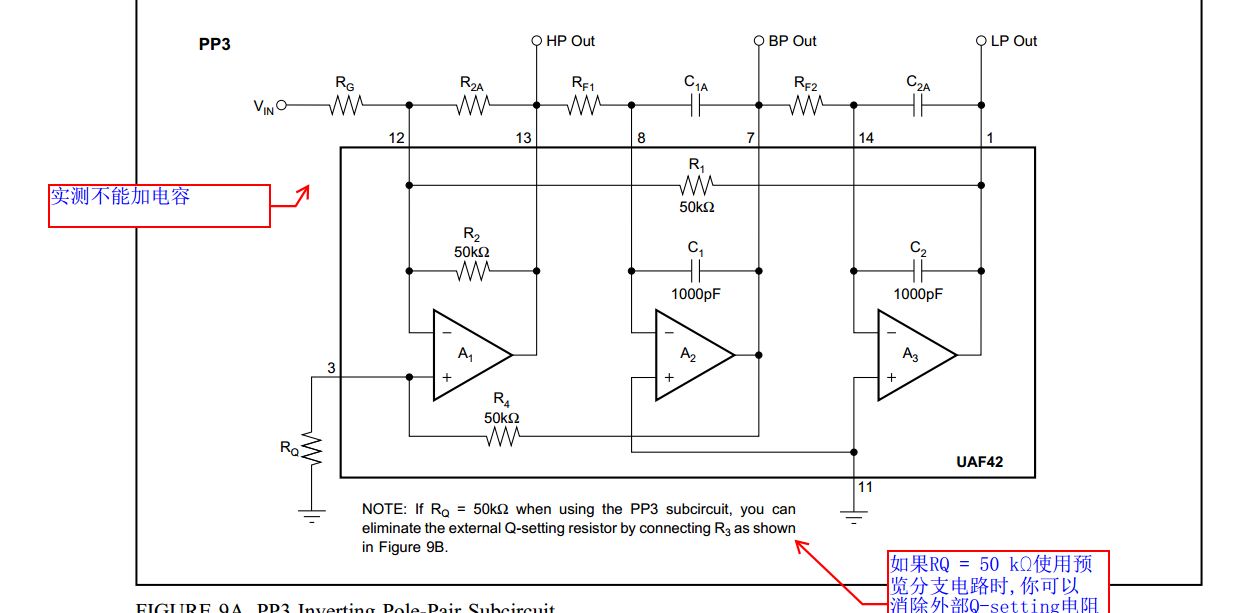 问题二:我按照芯片手册上的PP3搭的电路图(电路图见附件),当按照如图所示加了C1a和C2a电容,分别试了加100nf,10nf,1nf,都不能正常工作,其会发生衰减,而且不在有低通滤波特性,当去掉时,就可以正常工作了,这是为什么呀?