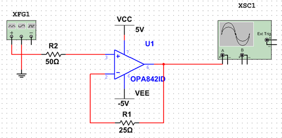 这样用opa842搭了个电压跟随器,想跟随20Hz-10MHz的信号的。在板子上面测试时,发现出现了振荡,大概30-100MHz的振荡信号,