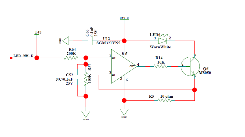 如图所示 能满足一般情况的需求,但是会有个小问题,及时led无法完全关断,在输入电压等于0,而且运放的1脚电压也是零,检测到三极管的1脚0.5v电压,led会有点光,不仔细观察无法发现。