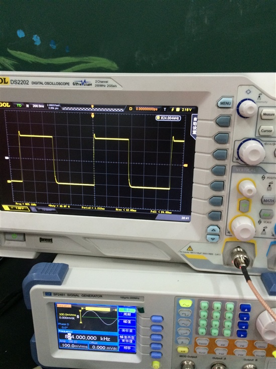 为什么低于100K时,输出的方 波的上升沿会抖动,展开时,会有一些正弦波叠加在上升沿上,求大神解决.....