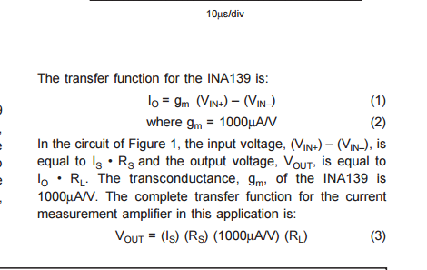 各位老师,TI给出关于INA169的datasheet没有清楚的表达增益Vout=(Is)(Rs)(Gm)(Rl),Gm是不变的吗,单位又是怎样的?希望了解的大神帮忙解释一下。谢谢~