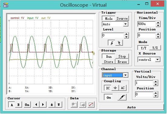 具体我搭接的电路如下:输入的波形是正弦波,但输出的波形不管输入的幅度多少,一直是个1V左右的直流信号