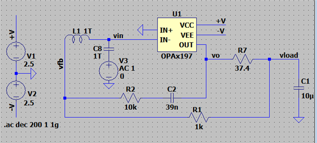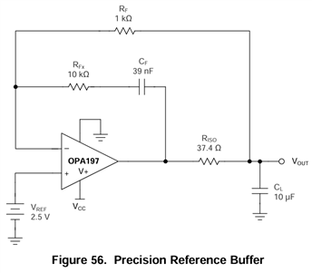 设计一个电路用到运放带参考电压, 按OPA192手册9.23中电路仿真大电容负载的缓冲器, 得到结果和手册的89度相位裕量一致. 不过有疑惑的地方请教: