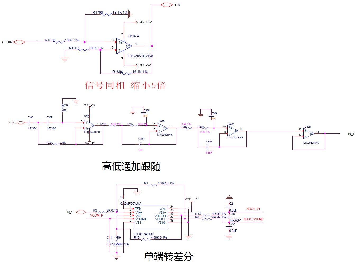 2.然后又做了如下测试,将前端1/5分压改为1/2分压,后端THS4524增益改为1倍