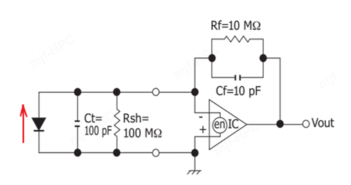 使用OPA320做TIA使用,PD是阳极接负(反相)输入,如图 ;