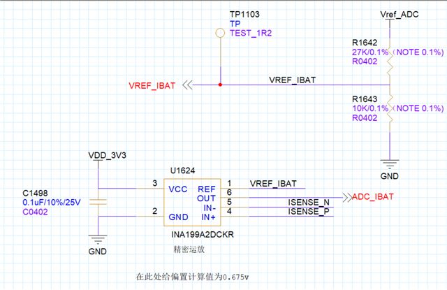 原理图如上,使用INA199A2运放做高端电流采样。未开机情况下,插入电池在主板上的3V3和GND之间出现50mv的压差