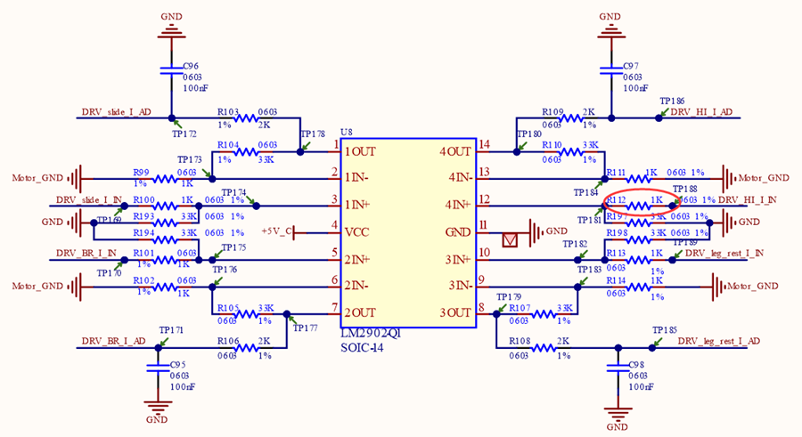 我们检测LM2902第4路通道的静态电压时,测得PIN12/PIN13/PIN14电压值异常,测试结果如下: