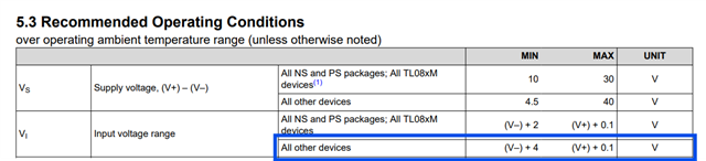 TL082I使用±5V供电,这是规格书上的最低供电电压。接成电压跟随器,按照手册,-3.5V到3.5V的输入电压应该可以工作。实测输入3V工作正常,跟随器输出电压和输入误差在10mV以内。但是输入-3V的时候跟随器输出电压误差超过140mV,请问是什么原因?