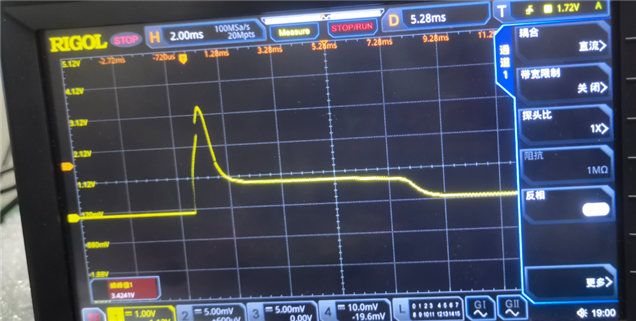 请教下   这个输出在启动瞬间会有很大过冲,在R?上面   图中的20K实际接的5R电阻,就是商店有很明显过充,没搞懂为什么?有大神指导下不?