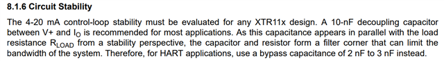 XTR115: 恒流源输出10mA,上电瞬间过冲。什么原因?
